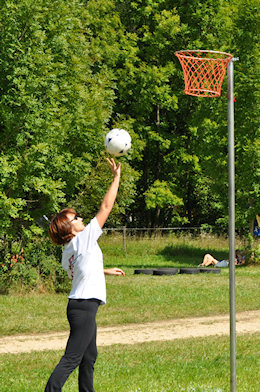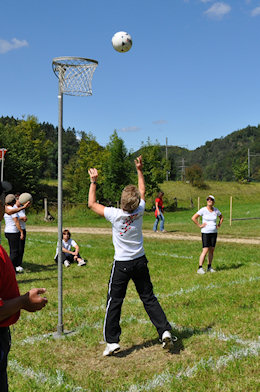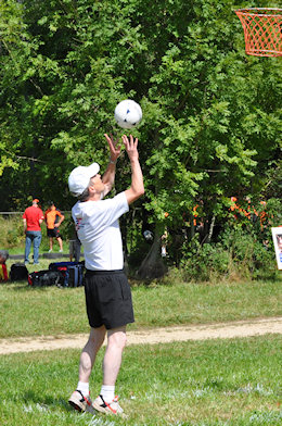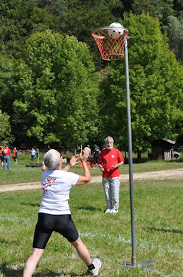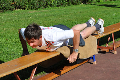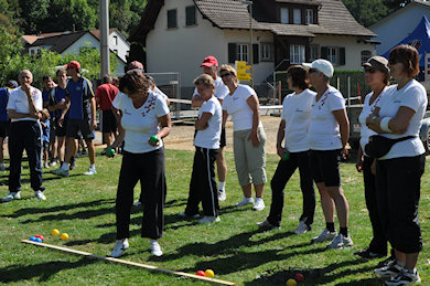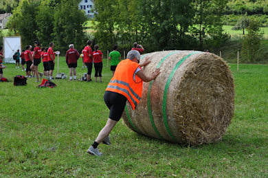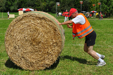 Boule, Steinstossen, Fussballslalom, Strohballenrollen und dem Ironman